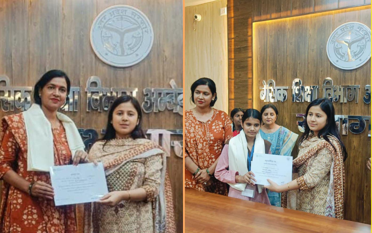 आराध्या ने बढ़ाया जनपद का मान, राज्य स्तरीय मीना प्रोग्राम में चयन पर मिला सम्मान