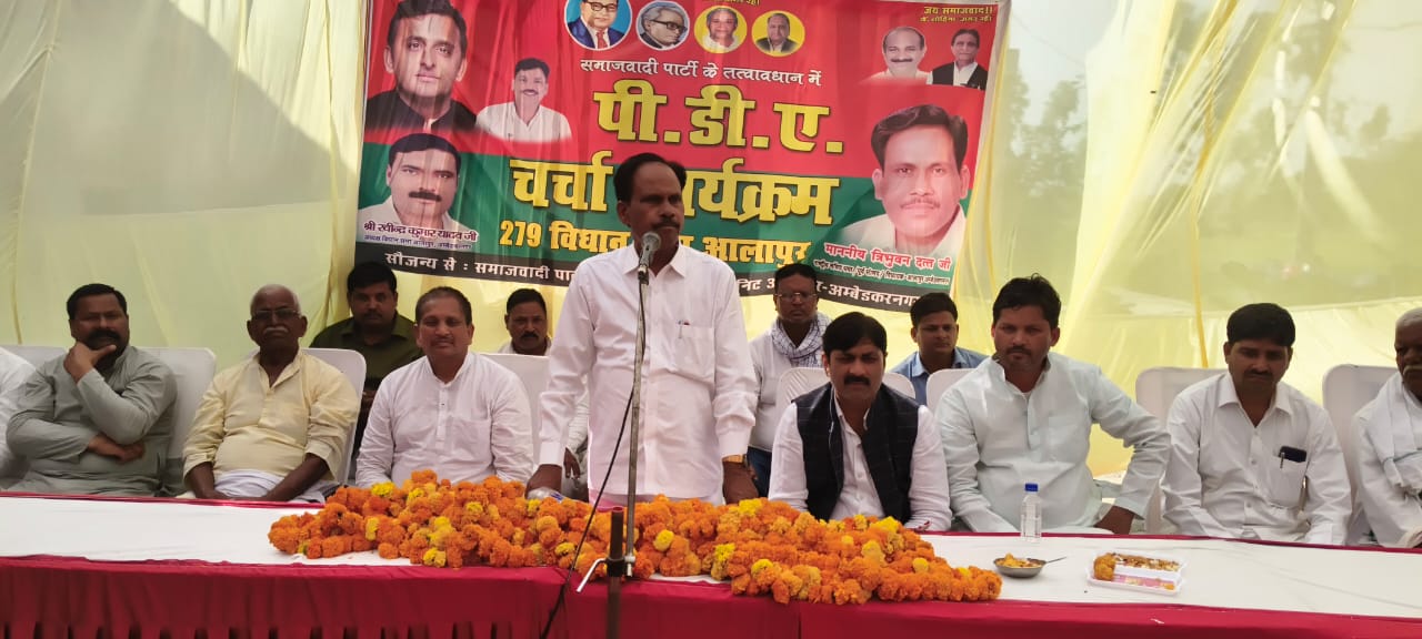 अंबेडकरनगर (अवधी खबर)। समाजवादी पार्टी के राष्ट्रीय अध्यक्ष उत्तर प्रदेश के पूर्व मुख्यमंत्री अखिलेश यादव के निर्देश पर विधान सभा क्षेत्र आलापुर के विकास खंड जहांगीरगंज के ग्राम सभा लखनडीह में सर्वेश भारती के आवास पर पी०डी०ए०पंचायत को मुख्य अतिथि सपा के राष्ट्रीय सचिव/पूर्व सांसद/आलापुर विधायक त्रिभुवन दत्त ने संबोधित किया। मुख्य अतिथि विधायक त्रिभुवन दत्त ने कहा कि बाबा साहब डॉक्टर भीमराव अम्बेडकर ने संविधान में आरक्षण दिया है ‘प्रभुत्ववादी और उनके संगी-‘साथी’ संविधान की समीक्षा के नाम पर आरक्षण को समाप्त करना चाहते हैं।