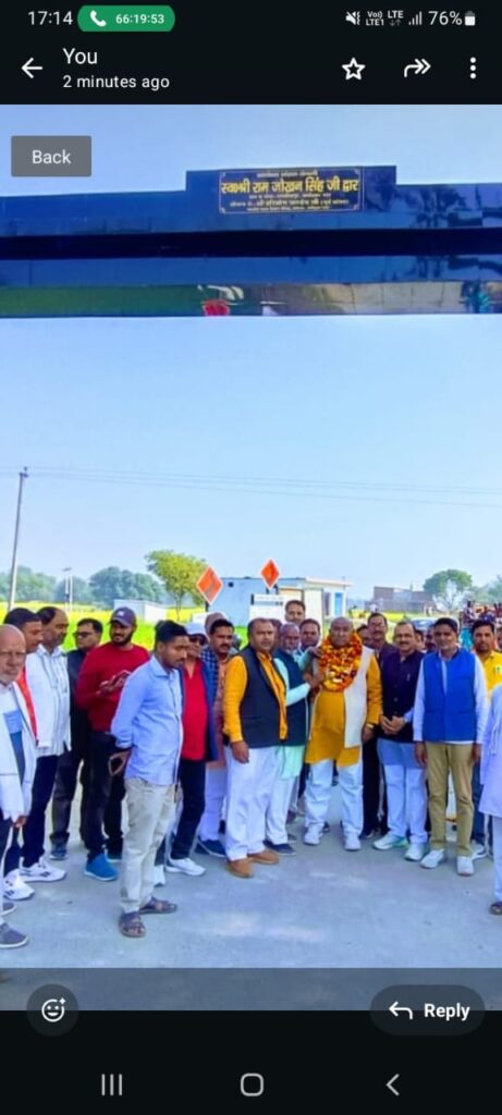 भीटी अंबेडकर नगर। स्वतंत्रता संग्राम सेनानी स्वर्गीय राम जोखन सिंह की याद में निर्मित पंचम दास कुटी से बस्तीपुर संपर्क मार्ग पर इटवा ग्राम पंचायत में बने विशाल गेट का उद्घाटन पूर्व सांसद और वर्तमान विधान परिषद सदस्य डॉक्टर हरिओम पांडे के द्वारा फीता काट कर किया गया। इस अवसर पर उपस्थित लोगों को संबोधित करते हुए विधान परिषद सदस्य डॉ हेमू पांडे ने केंद्र प्रदेश सरकार की तारीफ करते हुए कहा कि जब से डबल इंजन की सरकार बनी है तब से देश और प्रदेश लगातार विकास के पद पर अग्रसर है