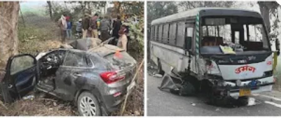 अम्बेडकरनगर। जिले में मंगलवार सुबह एक भीषण सड़क हादसा हुआ, जिसमें एक डेंटिस्ट की दर्दनाक मौत हो गई, जबकि उनकी पत्नी और बेटा गंभीर रूप से घायल हो गए। यह हादसा अकबरपुर-महरुआ मार्ग पर सुखारीगंज के पास ब्रह्मबाबा स्थान के समीप हुआ, जब एक डग्गामार उमंग प्राइवेट बस और कार की आमने-सामने भिड़ंत हो गई।हादसे का विवरण जानकारी के अनुसार, अकबरपुर कोतवाली क्षेत्र के इल्तिफातगंज रोड निवासी डेंटिस्ट डॉक्टर मनीष पांडेय अपने परिवार के साथ प्रयागराज कुंभ स्नान से लौट रहे थे। उनकी कार जैसे ही सुखारीगंज के पास पहुंची, वैसे ही अकबरपुर की ओर से आ रही तेज रफ्तार उमंग प्राइवेट बस से जोरदार टक्कर हो गई। टक्कर इतनी जबरदस्त थी कि कार के परखच्चे उड़ गए और बस का अगला हिस्सा भी बुरी तरह क्षतिग्रस्त हो गया।हादसे में कार चला रहे डॉ. मनीष पांडेय गंभीर रूप से घायल हो गए और कार में ही फंस गए, जिससे उनकी मौके पर ही दर्दनाक मौत हो गई। कार में सवार उनकी पत्नी और बेटा गंभीर रूप से घायल हो गए, जिन्हें स्थानीय लोगों और पुलिस की मदद से तुरंत जिला अस्पताल भेजा गया, जहां उनका इलाज चल रहा है।
