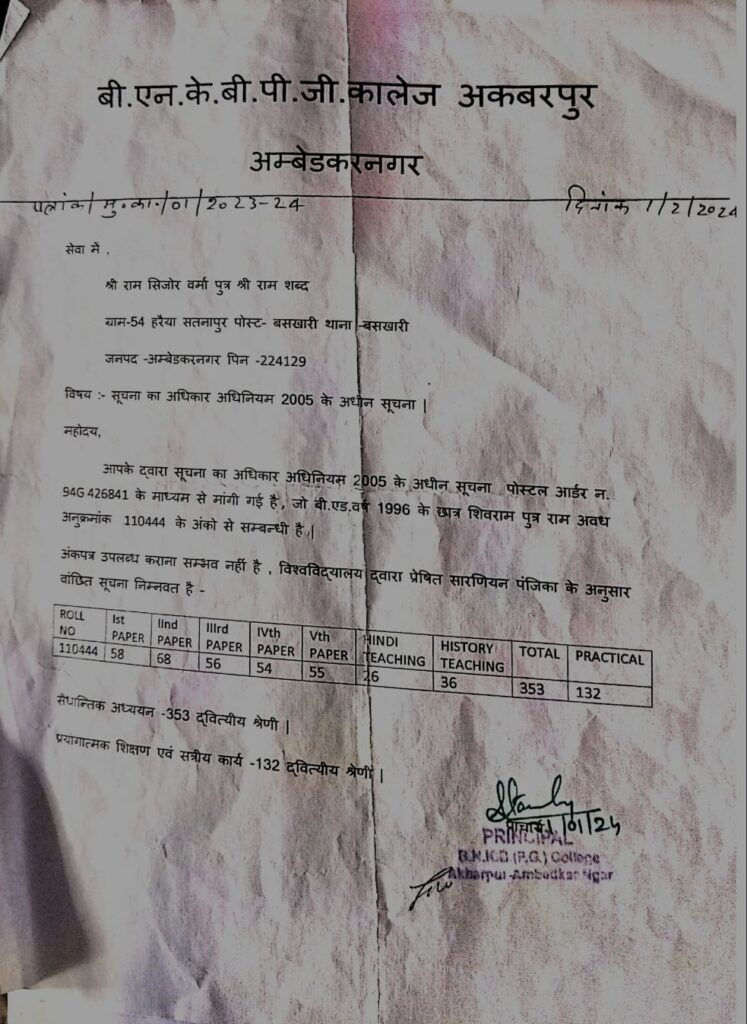 खण्ड शिक्षाधिकारी अकबरपुर ने पत्रांक संख्या 713 में लिखा शिवराम सहायक अध्यापक कम्पोजिट उ० प्रा० वि० अमौली के विरुद्ध की गयी शिकायत में आप द्वारा जनसुचना के माध्यम से उनको उपलब्ध करायें गए पत्रांक/मु०का०/01/2023-24 दिनांक 01/02/2024 को अपनी तरफ से प्रमाण के रूप संलग्न किया गया है उक्त को संज्ञान में लेते हुए कार्यवाही से पूर्व संस्था से इसका सत्यापन कराया जाना आवश्यक है