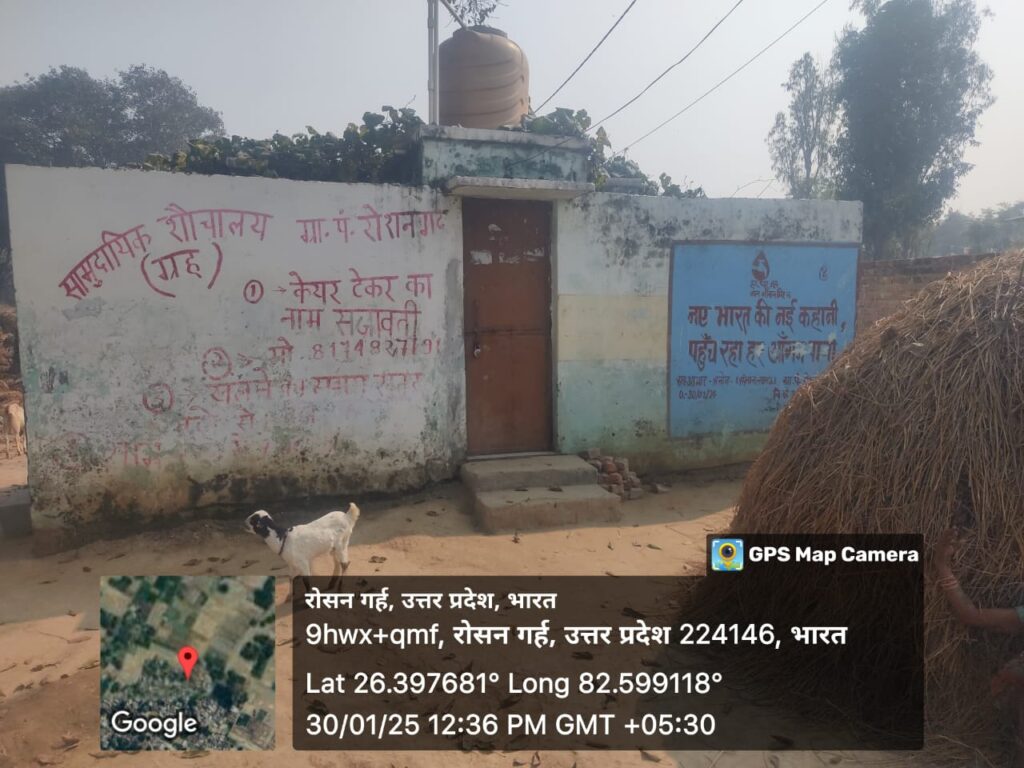 अकबरपुर विकासखंड के ग्राम सभा रोशनगढ़ में सामुदायिक शौचालय का हालत बद से बदतर है। गंदगी एवं शौचालय के अंदर का हालत देखकर खुद शर्म न आए। महिला केयर टेकर को न सफाई किट मिली नहीं बाल्टी मग वाइपर इत्यादि उपलब्ध नहीं था। जब महिला केयर टेकर से शौचालय के बारे में जानकारी लेने का प्रयास किया गया तो वह अपने आप को बचाती दिखी ना ही किसी प्रश्न का जवाब दिया सामुदायिक शौचालय के गड्ढे से गंदा पानी मैदान में बहने लगता है जिससे शौचालय के अगल-बगल रहने वाले लोगों को दुर्गंध का सामना करना पड़ता है, सामुदायिक शौचालय का फर्श टूटा फूटा तथा गंदगी के वजह से वहां उपयोग करने वाले लोगों को डेंगू मलेरिया आने जैसी होने वाली खतरनाक बीमारी हो सकती है।सामुदायिक शौचालय के ठीक सामने गंदगी का अंबार देखने को गड्ढे में एकत्रित गंदा पानी जिससे बीमारियों का संकेत दे रहा है।