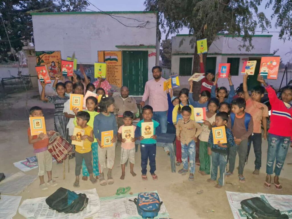 जिससे समाज निर्माण में एक अच्छे व्यक्ति का पदार्पण हो। जो एक बदलाव की ओर अग्रसर हो।पाठ्य सामग्री में कॉपी पेंसिल पेन रबर 40 बच्चों में विपरीत किया गया। इस अवसर पर पवन कुमार निषाद, आरती गौतम शिक्षिका, संचालक राजू निषाद, धर्मेंद्र निषाद, अभिषेक निषाद,सहित कई लोग मौजूद रहे।