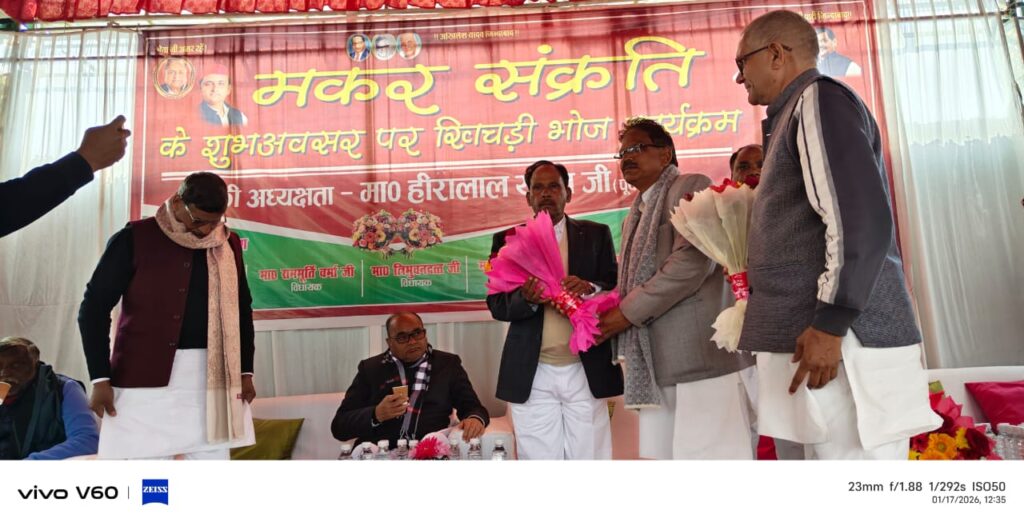मकर संक्रांति पर साई वाटिका में खिचड़ी भोज, सपा नेताओं ने साधा सरकार पर निशाना