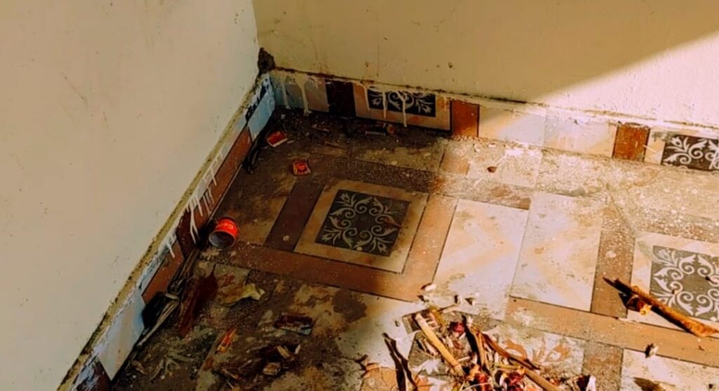 ग्रामीणों के अनुसार, पंचायत भवन का निर्माण हाल ही में हुआ है, लेकिन कुछ ही समय में फर्श पर लगी टाइल्स जगह-जगह से उखड़ने लगी हैं। टाइल्स के नीचे की सामग्री भी मानकों के अनुरूप नहीं दिख रही। आरोप है कि बालू की अधिकता और सीमेंट की कमी के कारण ईंटों की पकड़ कमजोर हो गई, जिससे दीवारों में दरारें दिखाई देने लगी हैं।