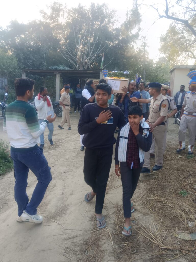 सूचना मिलते ही गांव व आसपास के क्षेत्रों से बड़ी संख्या में लोग अंतिम दर्शन के लिए उमड़ पड़े।बेटे ने दी पिता को मुखाग्निसोमवार सुबह गांव के श्मशान घाट पर पूरे सैन्य सम्मान के साथ अंतिम संस्कार किया गया। 14 वर्षीय बेटे अंश ने अपने पिता को मुखाग्नि दी। इस दौरान छोटा भाई गोलू भी उनके साथ मौजूद रहा। यह दृश्य देखकर वहां उपस्थित सैकड़ों लोगों की आंखें नम हो गईं।सीआरपीएफ के जवानों ने पार्थिव शरीर को चिता पर रखकर पुष्पचक्र अर्पित किया और गार्ड ऑफ ऑनर देते हुए अंतिम सलामी दी।